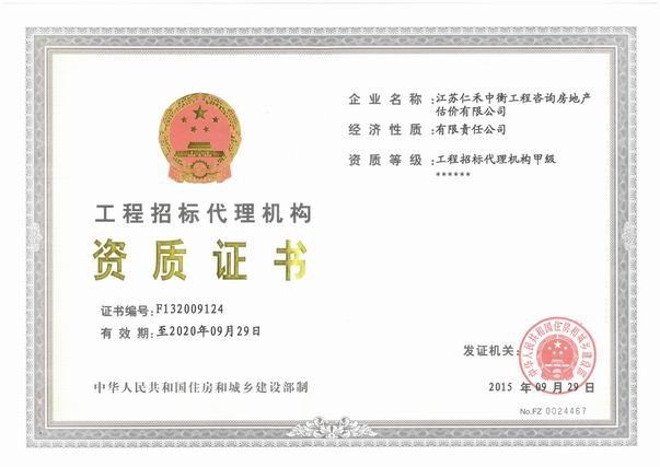 - 招標(biāo)代理甲級(jí)資格證書(shū)