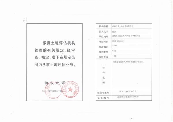 - 土地評(píng)估資質(zhì)證書(shū)