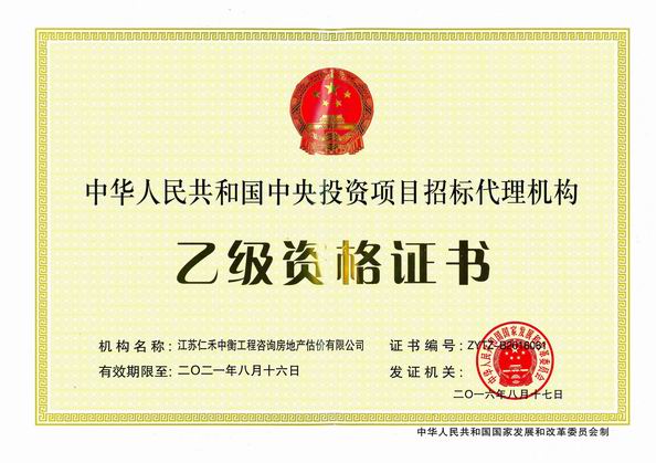 - 中央投資招標(biāo)代理乙級(jí)